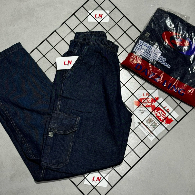 Comprar na ShopeeCalça Cargo Masculina Jogger Elastano Sarja Punho Elastico Street Casual Jeans Escuro