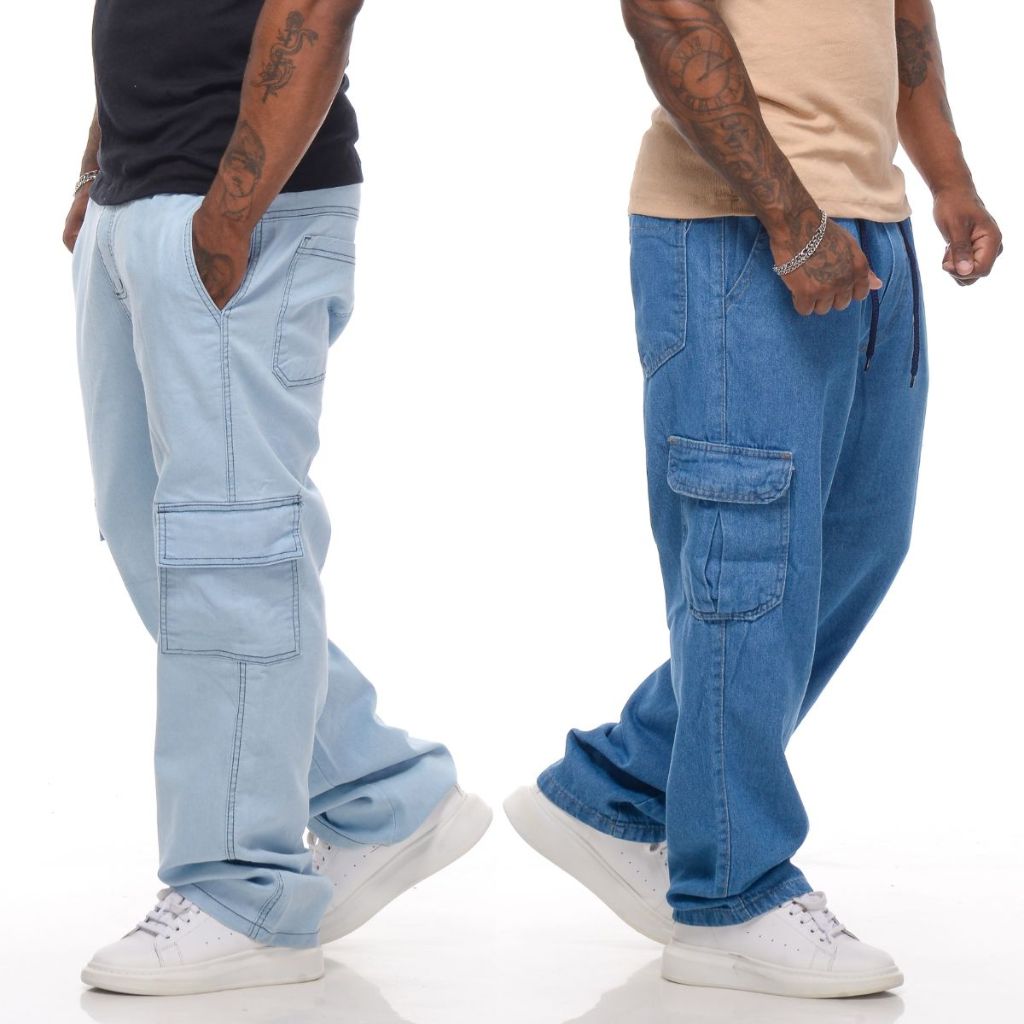 Comprar na ShopeeCALÇA CARGO BALÃO UNISEX SARJA E JEANS ESTILO SKATISTA