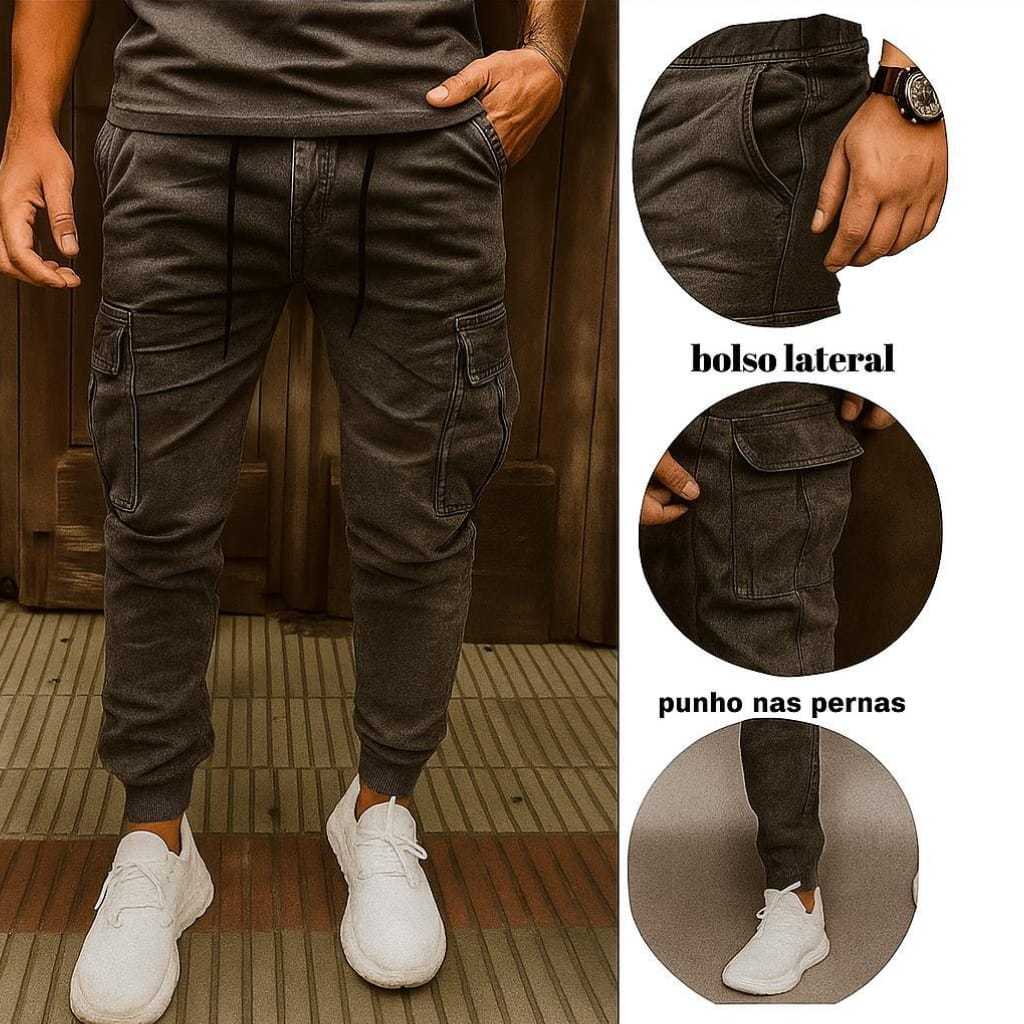 Calça Cargo Skate Jeans Masculina Streetwear Bolso Lateral