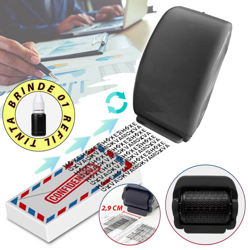 Carimbo Segurança Protetor Privacidade Confidencial Proteção Rolo Rolete Esconde Apaga Dados Sigilosos Roller Rolinho