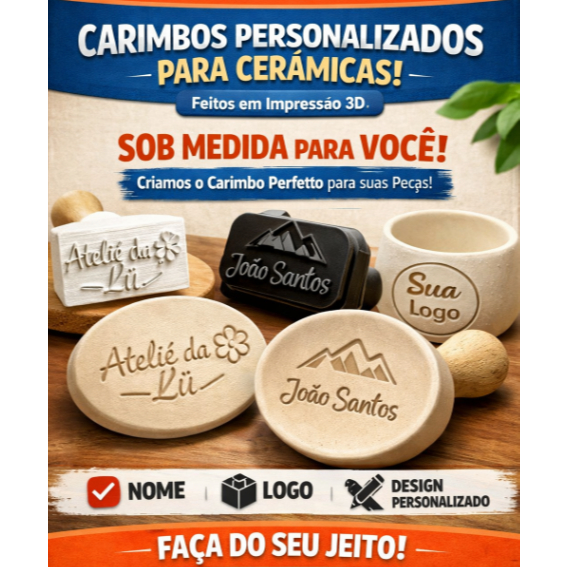 Carimbo para Argila e Cerâmica Personalizado | Nome ou Logo | Impressão 3D