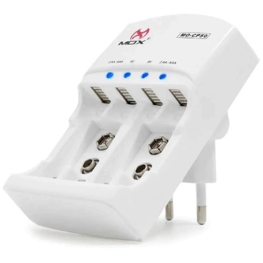 Comprar na ShopeeCarregador De Pilha Recarregável Mox + 4 Pilhas Palito Aaa