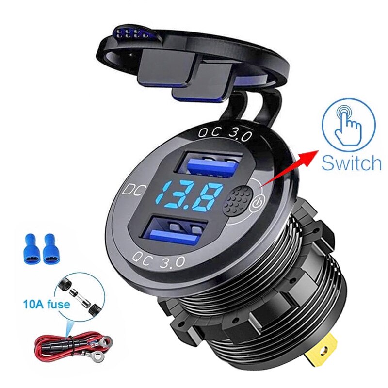 Tomada USB Carro Moto Caminhão Barco Universal Carregador Duas Entradas Redonda Roadstar