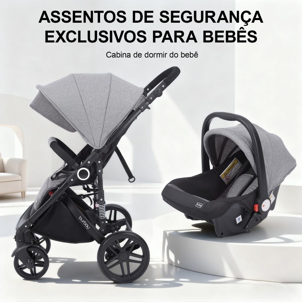 Comprar na ShopeeCarrinho de Bebê Travel System 3 em 1 Alta Visão – Bebê Conforto + Assento Reclinável + Mochila Maternidade
