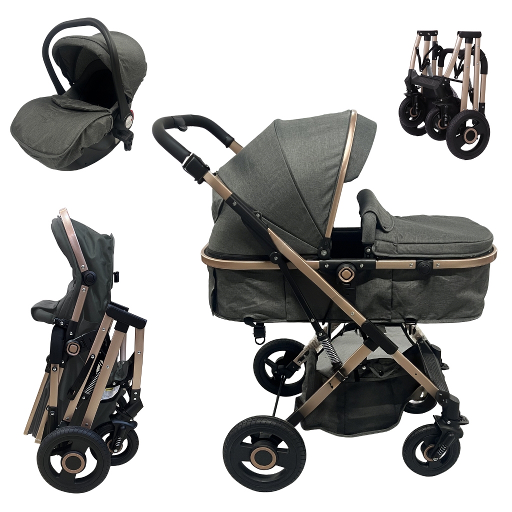 Comprar na ShopeeCarrinho De Bebê 3 em 1 Luxo Completo Com Bebê Conforto e Moisés Reversível Dobrável Reforçado