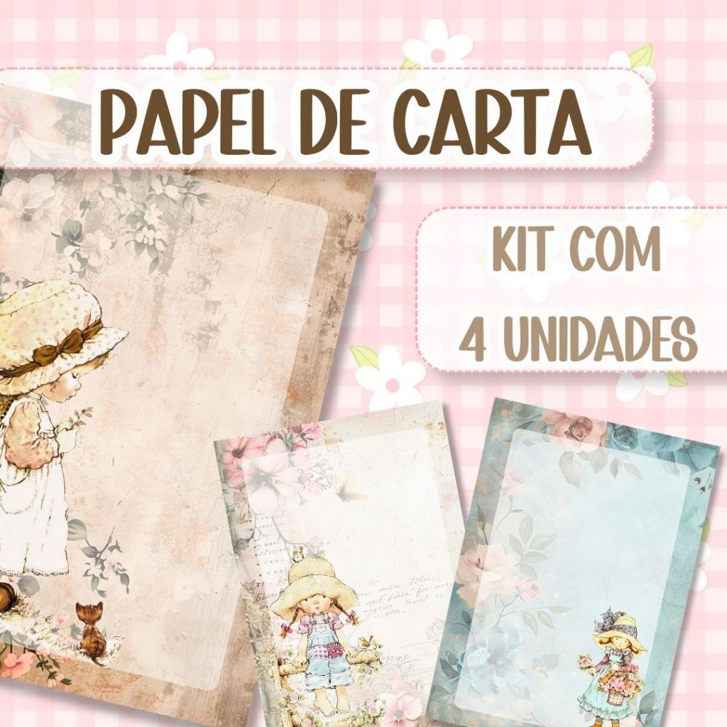 Comprar na ShopeePapel de Carta Vintage Floral Sarah Kay 14x20cm Kit 4 Unidades Cartinhas Scrapbook Decorado