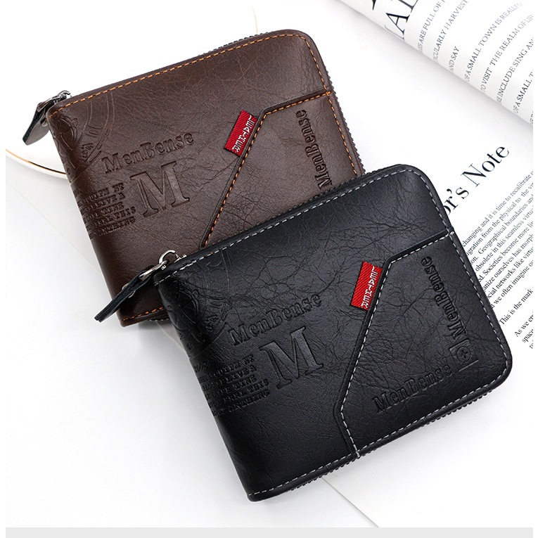 Comprar na ShopeeCarteira Masculina De Couro PU Vintage-Bolsa Curta Com Zíper E Fecho De Ferrolho.-ATACADAO-