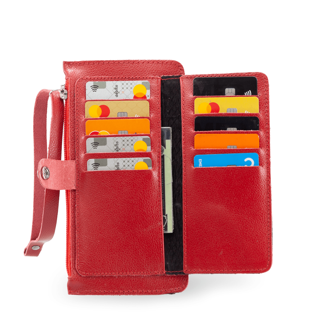 Carteira de Mão Feminina Grande Em Couro Legitimo Zíper Para Celular