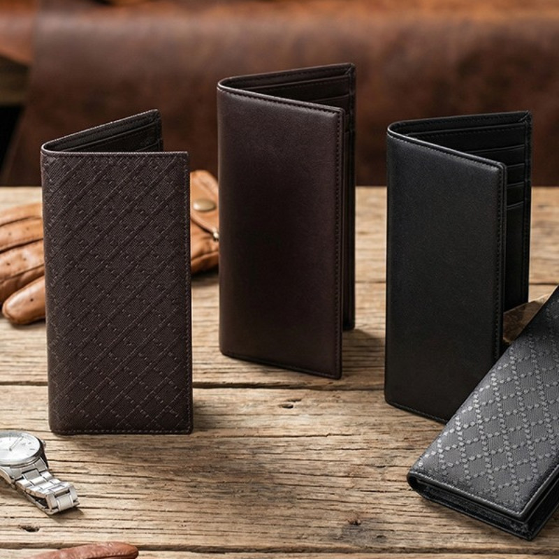 Carteira Longa Com Padrão Em Relevo | Carteiras Bilfold Masculinas Slot Para Vários Cartões Organizador De Identificação