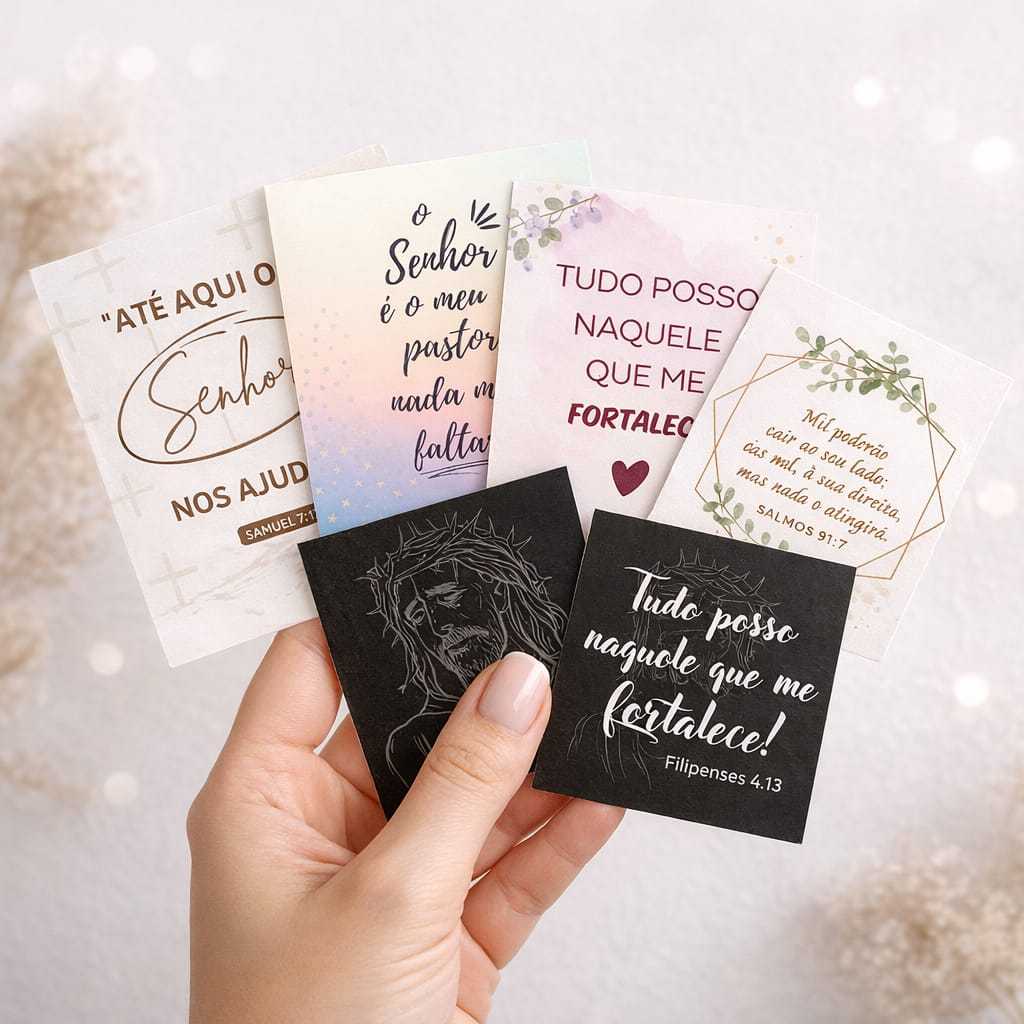 Mini Cartão com mensagens Bìblicas e frases inspiradoras Frases de Deus Arte já pronta no tamanho 4x5cm