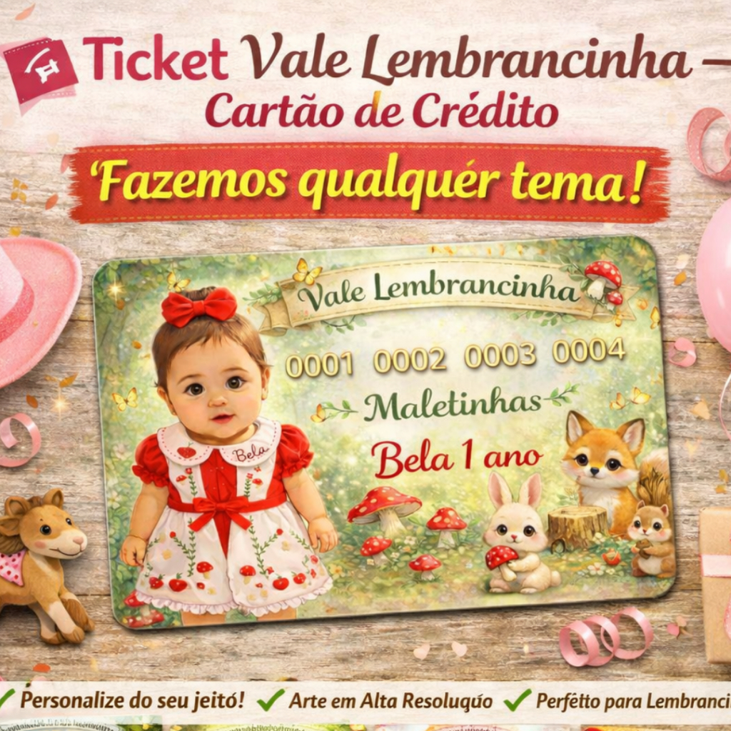 100 tickets para lembrancinha personalizado | Vale lembrança estilo cartão de crédito