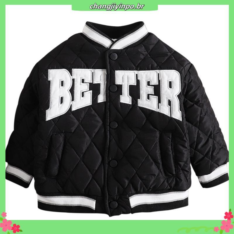 Novo Casaco De Inverno Para Bebês Meninos Carta De Algodão Liso Crianças Meninas Espessas E Mantem Quente Beisebol