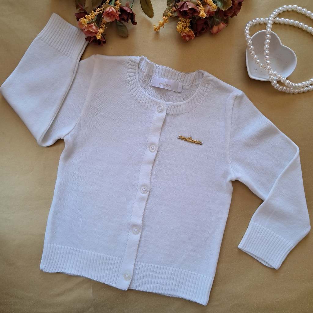 Cardigan Casaquinho Tricô fino off white para bebê | Tamanho 1 | Marca Milon