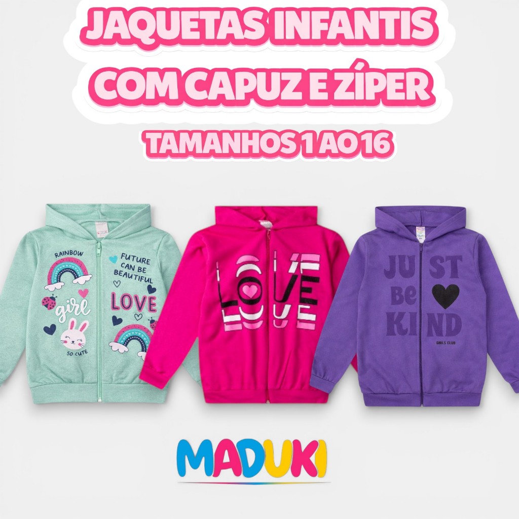 Comprar na ShopeeJaqueta Infantil Juvenil Menina Inverno Premium com Ziper e Capuz