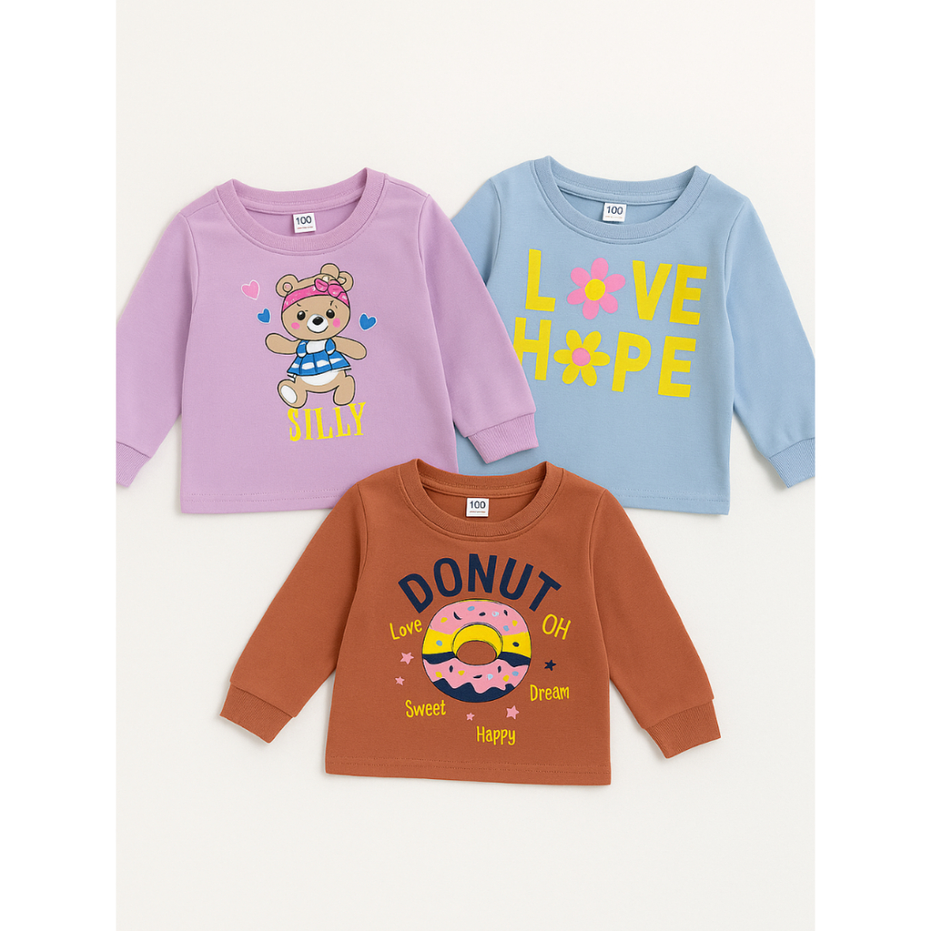 Comprar na ShopeeKIT com 3 Blusa de moletom para MENINAS SEM capuz estampado