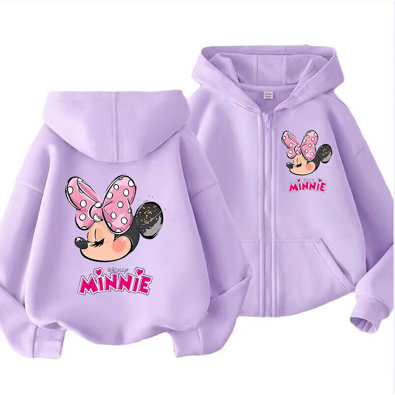 Engraçado Zip Up Hoodie Kawaii Crianças Minnie Mouse Moletom Com Capuz Zíper Roupas Criança Menina Casacos