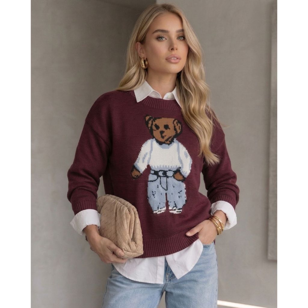 Comprar na ShopeeBlusa Ursinho Feminina Tricô Manga Longa Moda Inverno Tricot Barra Canelada Gola Canoa