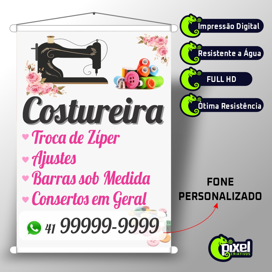 Banner em Lona 50x70cm / 58x88cm - Pronto Tema Costureira