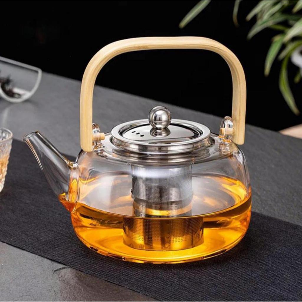 Comprar na ShopeeChaleira De Vidro Com Infuso Inox E Alça De Bambu 1 Litro