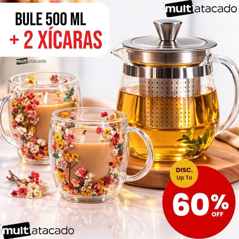 Comprar na Shopeenovo:Chaleira + 2 xicaras ou + 1 xicara ou sem xicara Chá Vidro Infusor 750ml 500 ml 350 ml Bule Chá
