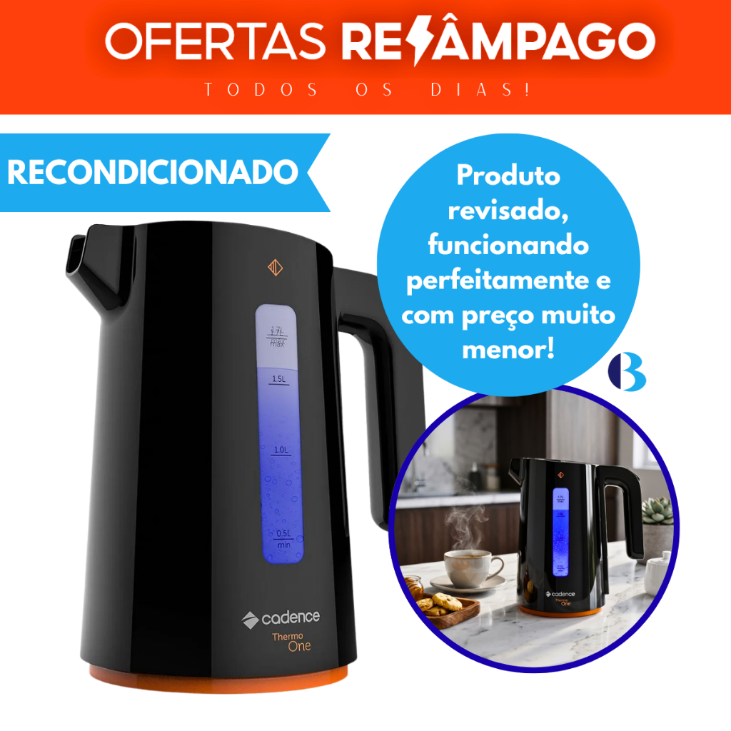 Comprar na ShopeeChaleira Elétrica Preta Colors 1,7L RECONDICIONADA - Ideal Para Preparar Chá, Café e Chimarrão!