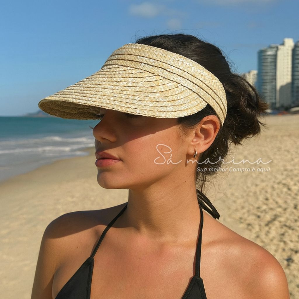 Viseira feminina PALHA NATURAL Proteção contra o Sol Verão PALHA