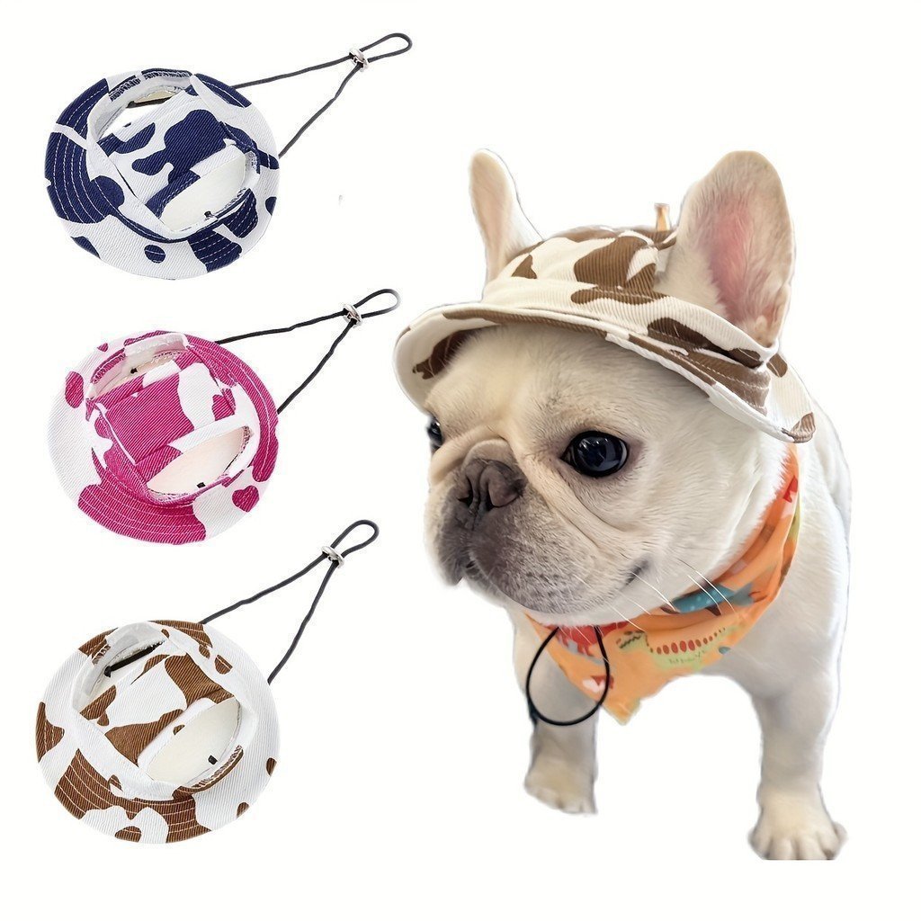 Chapéu Balde Ajustável Com Estampa De Vaca Fofa Para Cães Pequenos E Médios-Boné Externo 100 % Algodão Exibição De Orelh