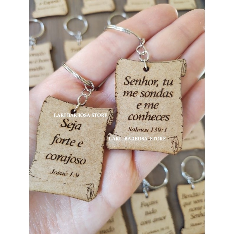 Comprar na ShopeeChaveiros com versículos Bíblico SORTIDOS Pergaminho MDF lembrancinhas cristã vão prontos montados