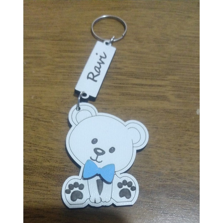 Chaveiros em MDF Ursinho Charmoso Gravata Azul ou laço Rosa.