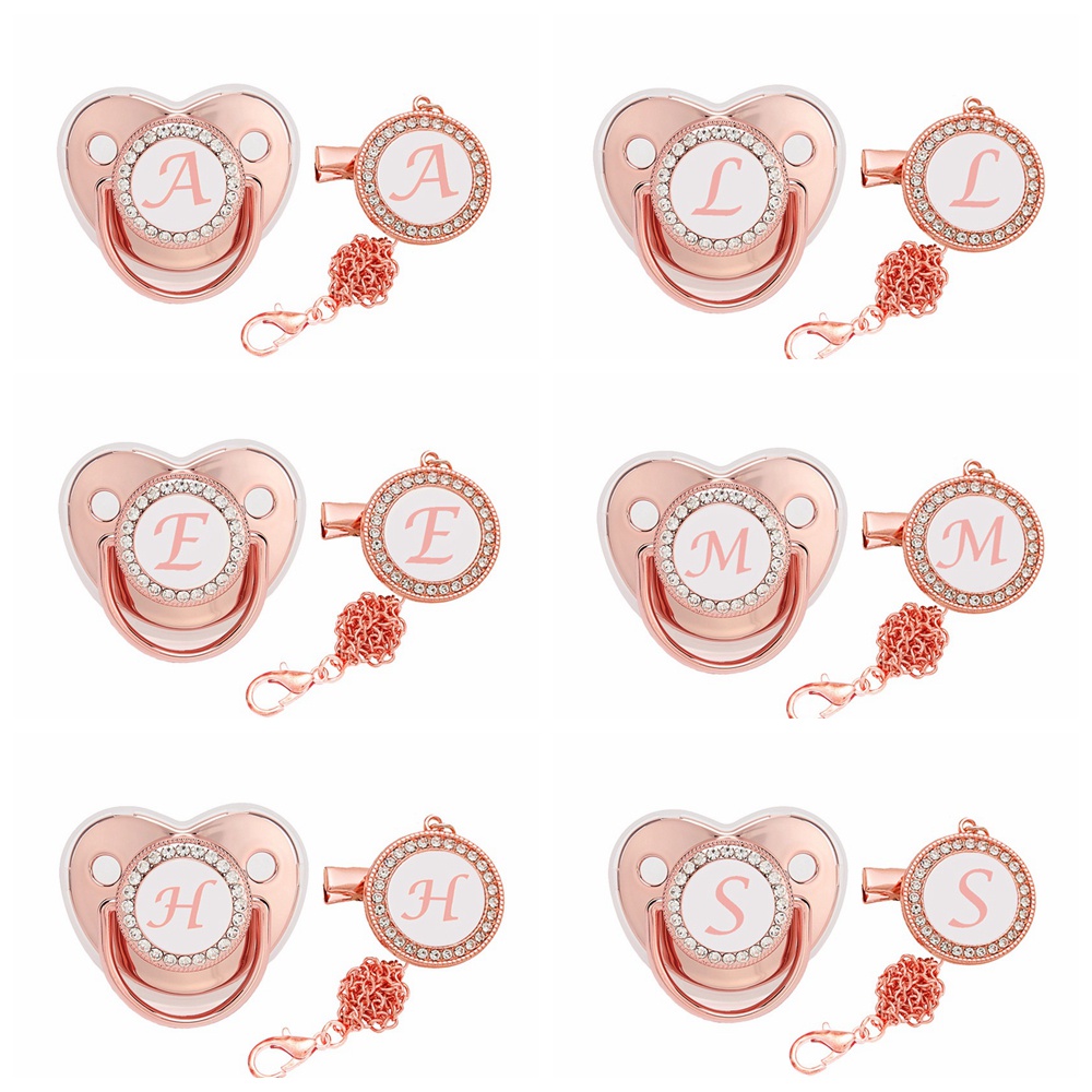 Comprar na ShopeeRosa Vermelha 26 Letras Bling Baby Pacifier Com Clip De Corrente