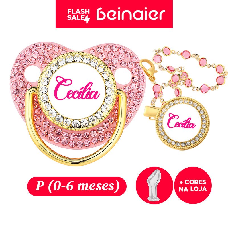 Comprar na ShopeeChupeta Bebê Personalizada Nome Strass | Tamanho 0-6 Meses