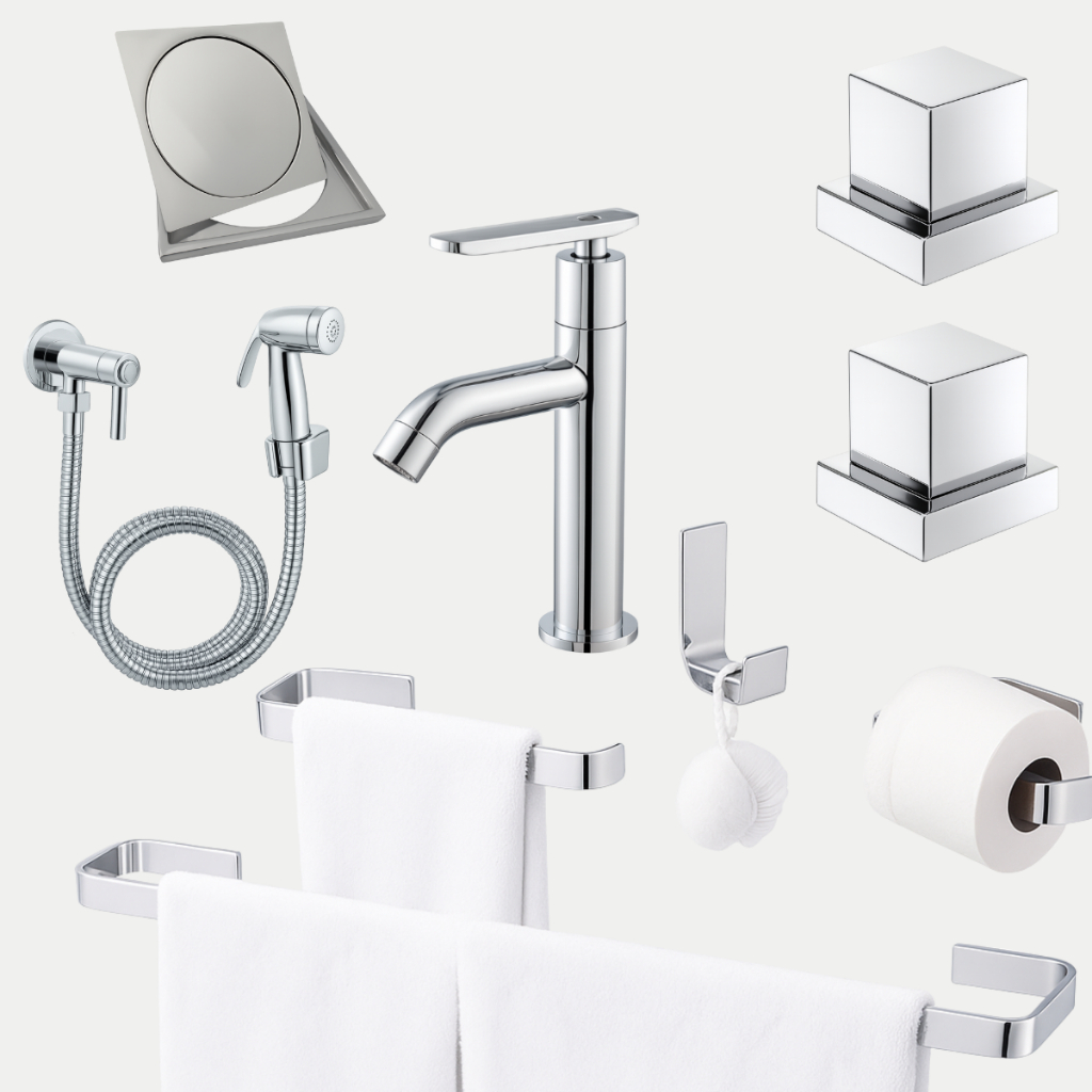 Comprar na ShopeeKit Acessórios de Banheiro Cromado +Torneira Bica alta+ Ducha Higienica+ 02 Acabamento Metal Deca+ Ralo Click 10x10