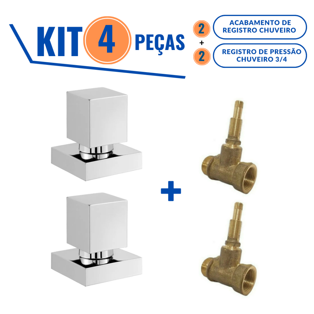 Comprar na Shopeekit 02 Registro de Pressão 3/4 Padrão Deca + 2 Acabamento Metal Quadrado Cromado