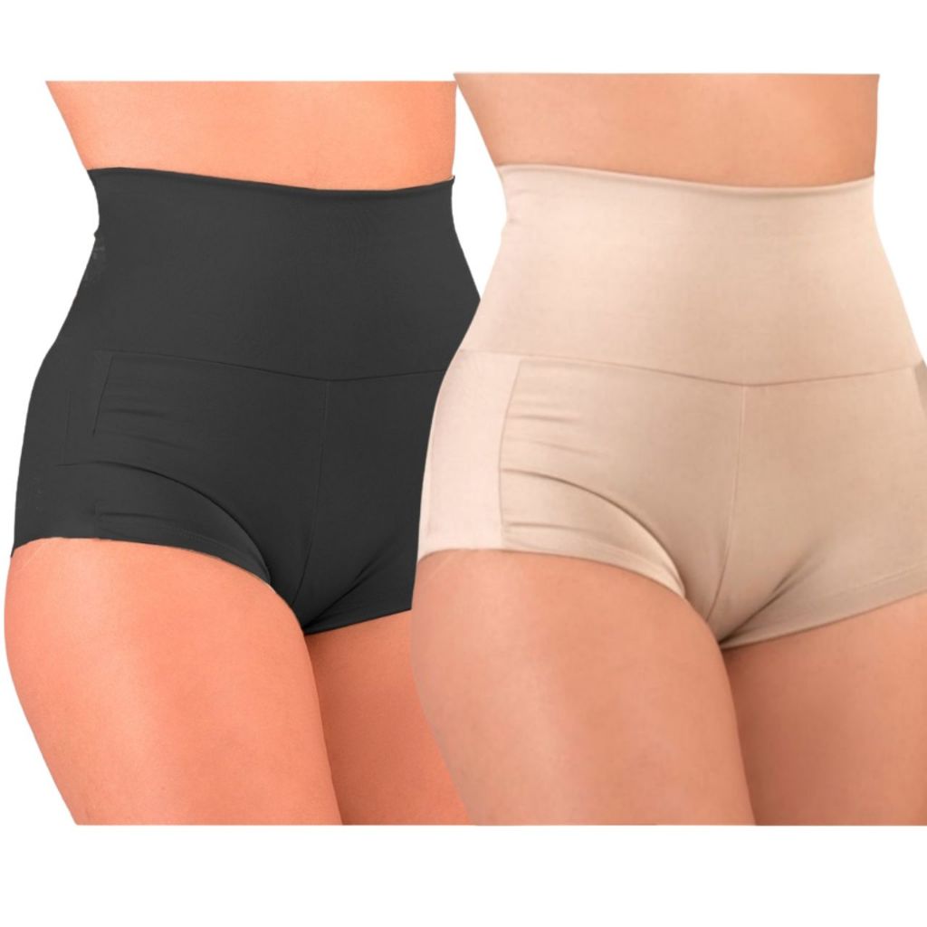 Comprar na ShopeeKit Shortinho Cós Alto 7cm Poliamida Compressão Cueca Box Feminina Cintura Alta Empina Bumbum