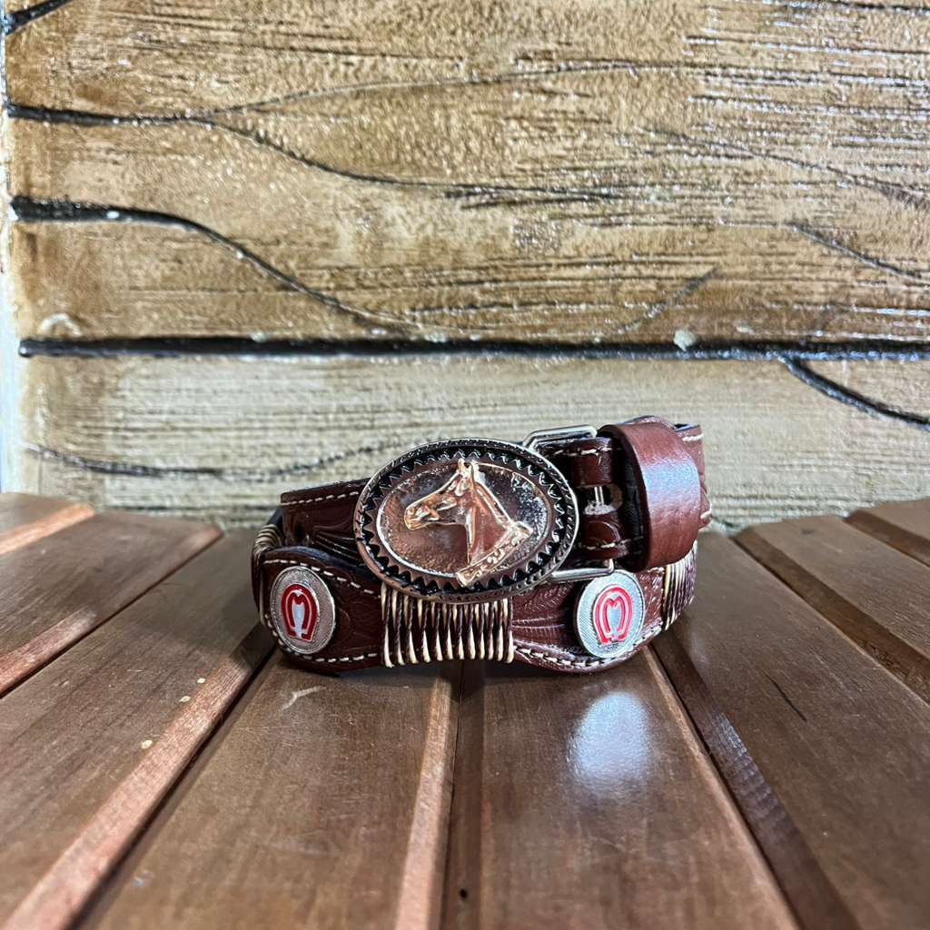 Cinto Infantil Cavalinho 2 Apliques Couro Legítimo Muita Qualidade Novidade