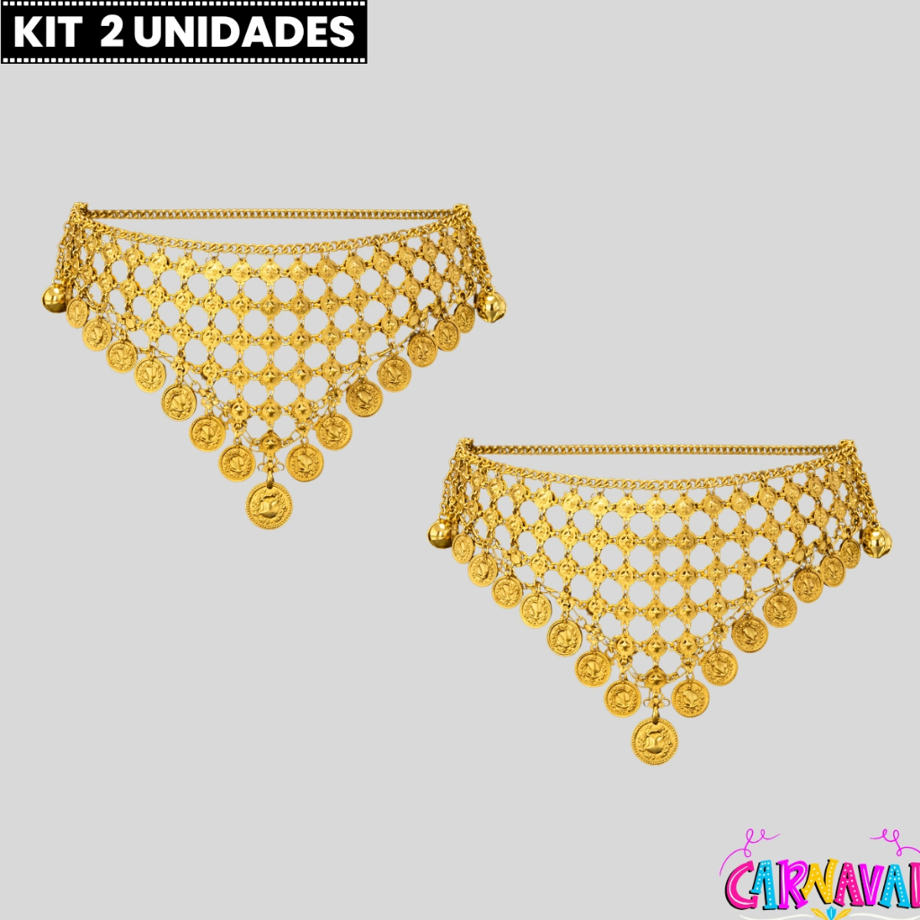 Kit 2 Cinto Feminino Moedas Metalizado Dança Fantasia Carnaval