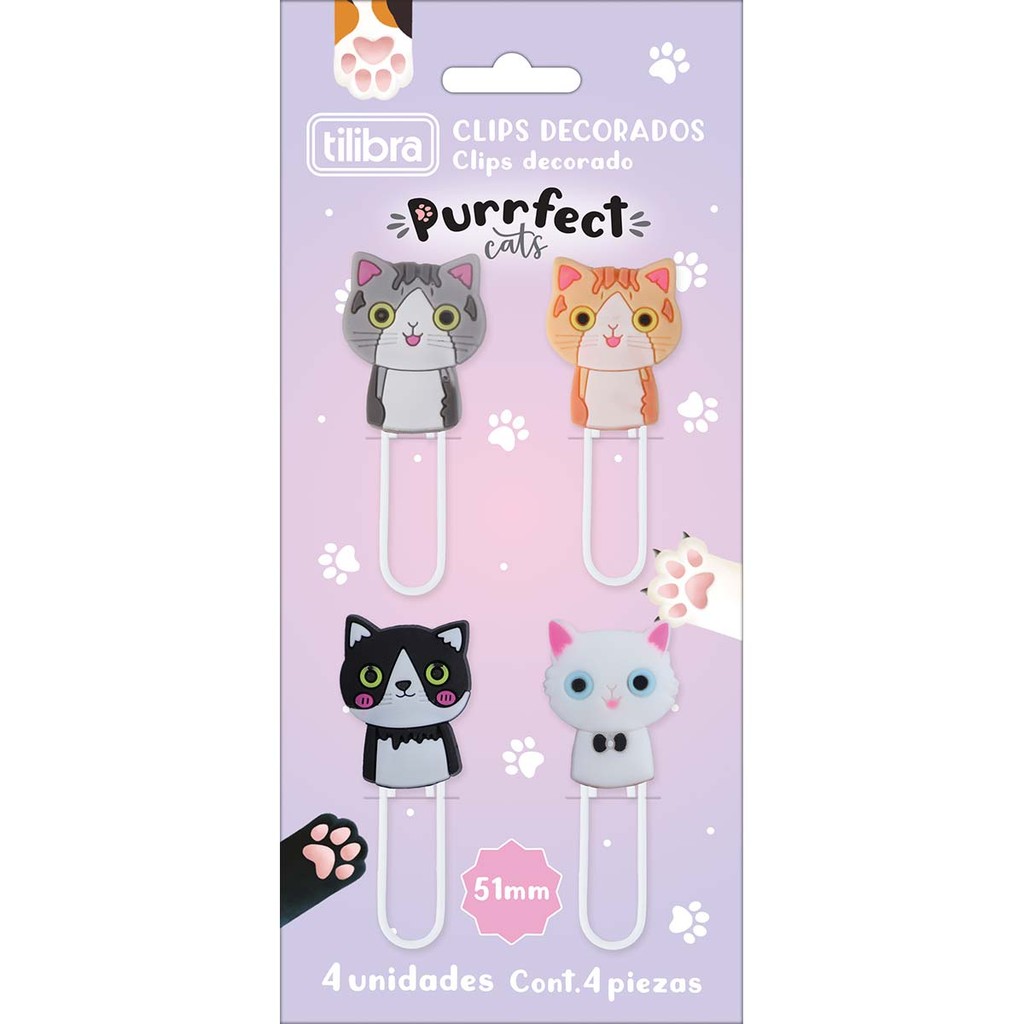 Comprar na ShopeeClips 51mm Decorados Tilibra Blister c/ 4 Un - Purrfect Cats