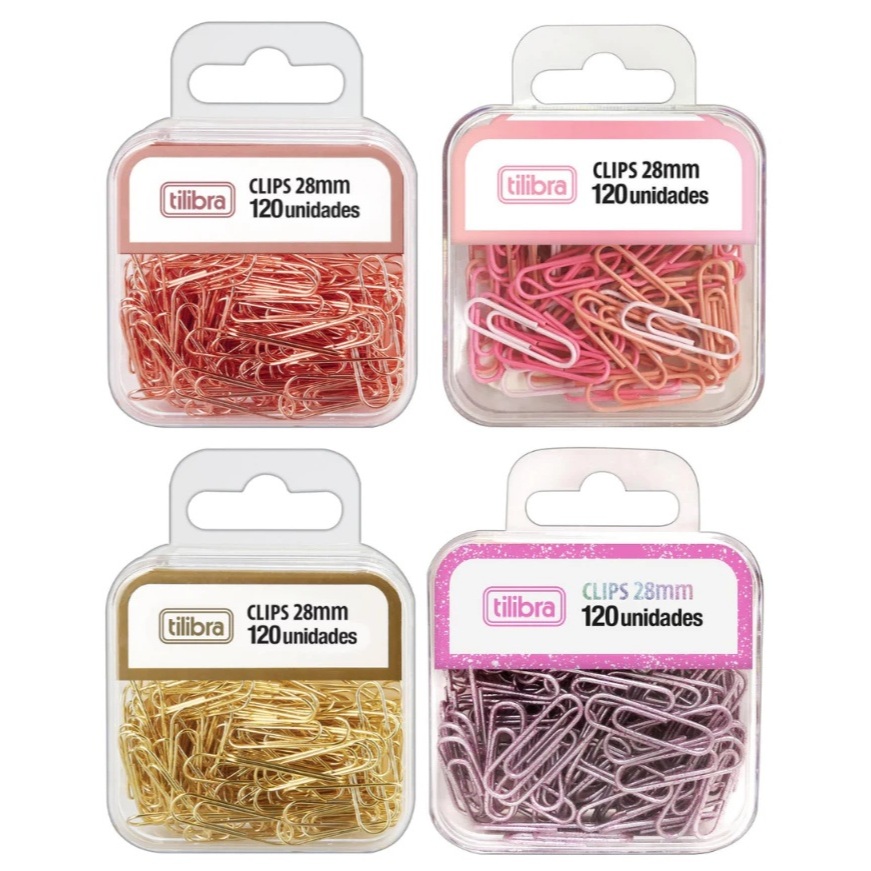 Clips 28mm com 120 unidades Metalizado Tilibra - Dourado, Rose gold, Rosa Pastel, Glitter