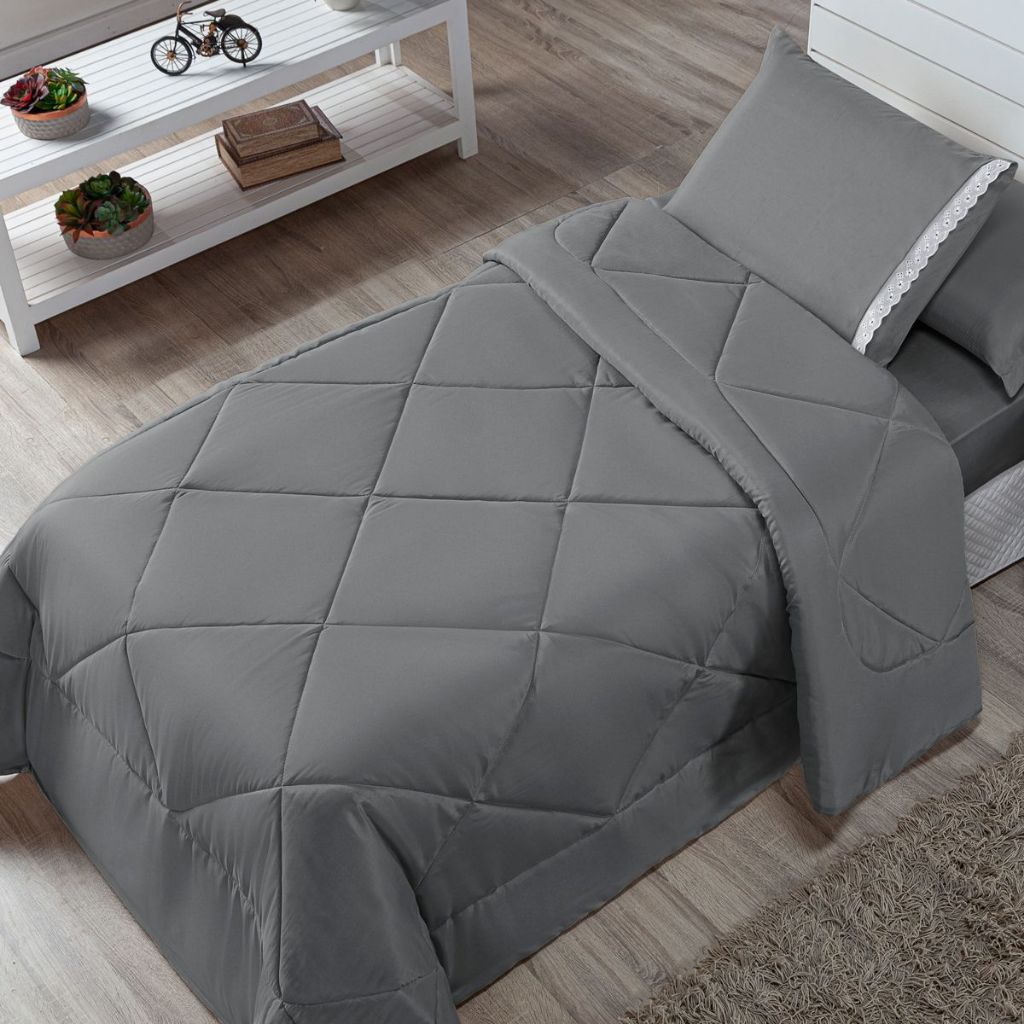 Kit Edredom Solteiro Infantil Aconchego com Lençol 04 Peças