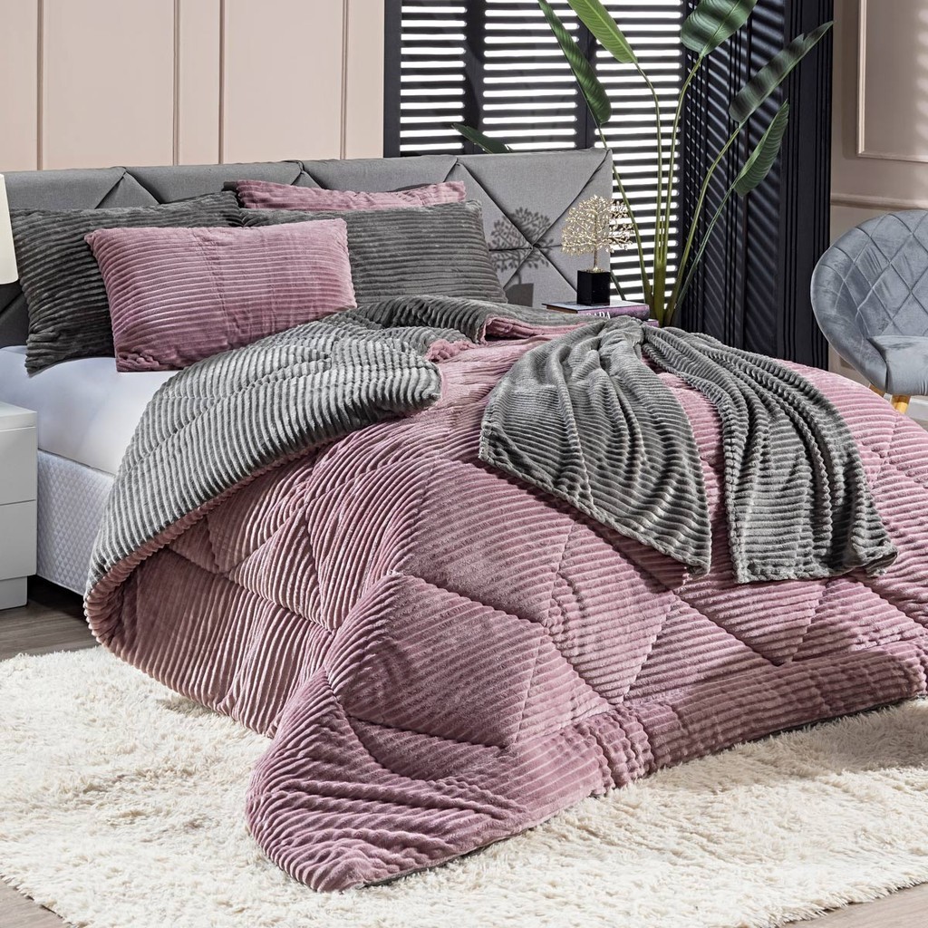 Comprar na ShopeeKit Coberdrom KING 03 Peças Edredom Cobertor Dupla Face Canelado Denver Manta Quente com Fronhas
