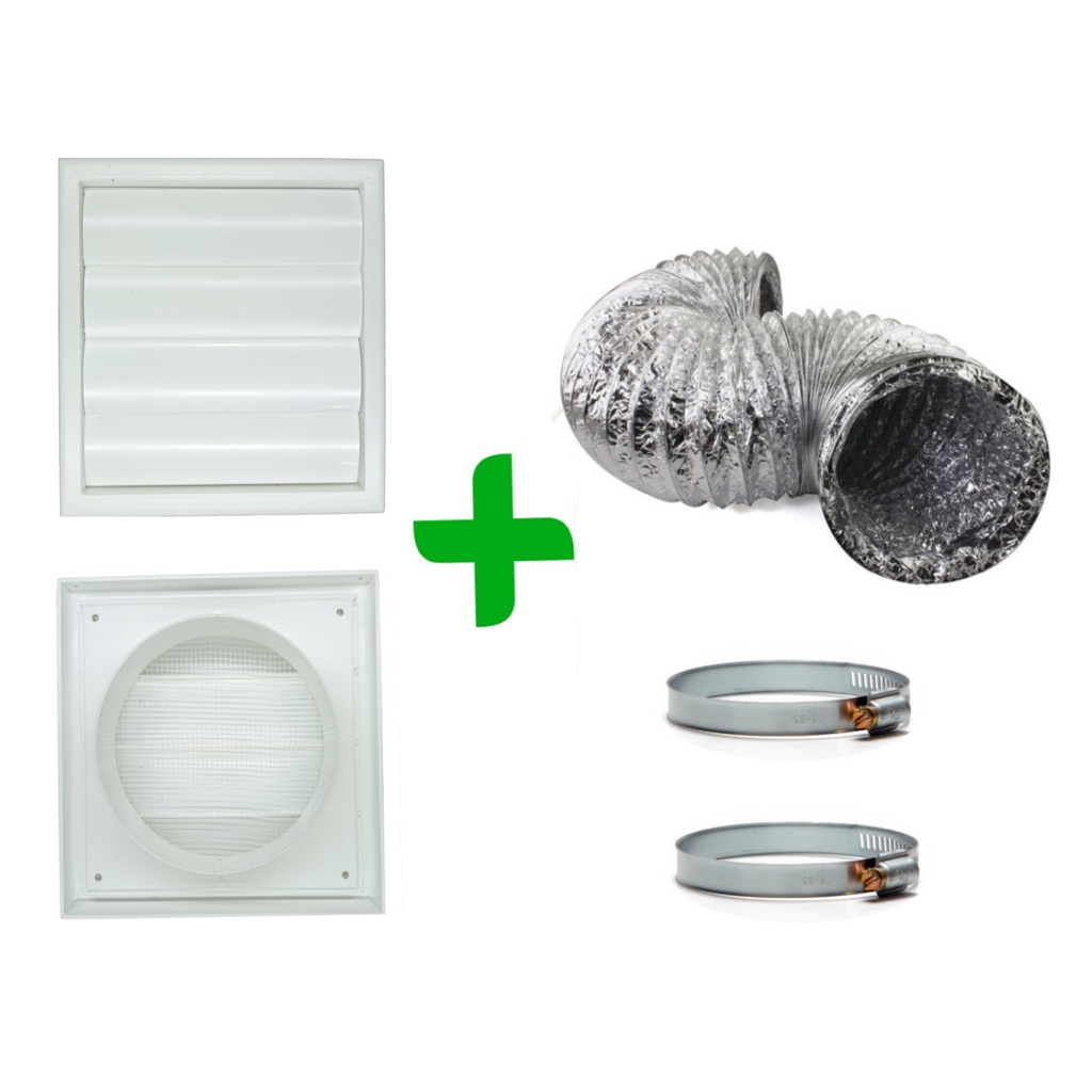 Kit P/ Inst. De Coifas C/ Grelha De Exaustão Auto Fechante 125mm E Duto 6m