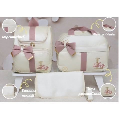 Kit Bolsa Maternidade luxo 3 peças personalizados com bolsa G, mochila e trocador