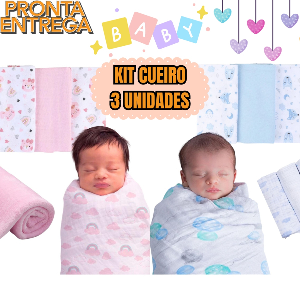 Comprar na ShopeeKit 3 Cueiro Flanelado Estampado 50 x 80 Infantil Enxoval Bebê Menino Menina Rosa E Azul