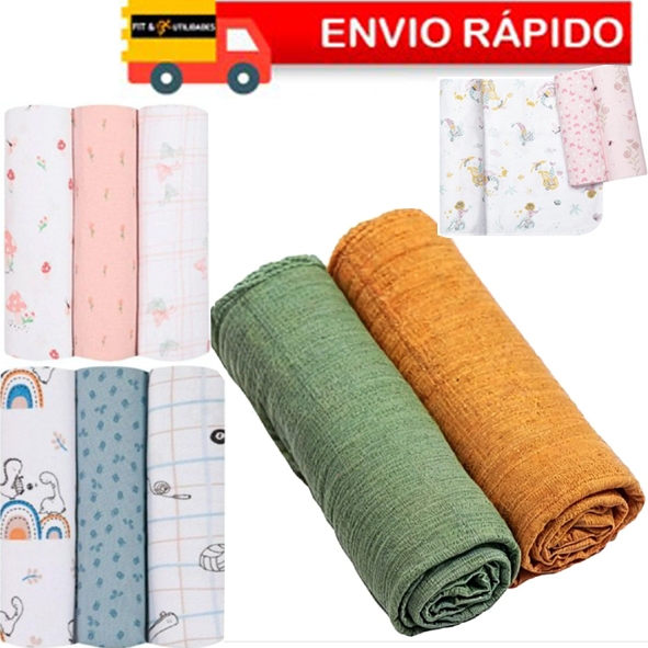 Comprar na ShopeeKit 6 Unidades Cueiro Bebê Manta Estampado e Flanelado 80 cm x 50 cm 100% Algodão Papi