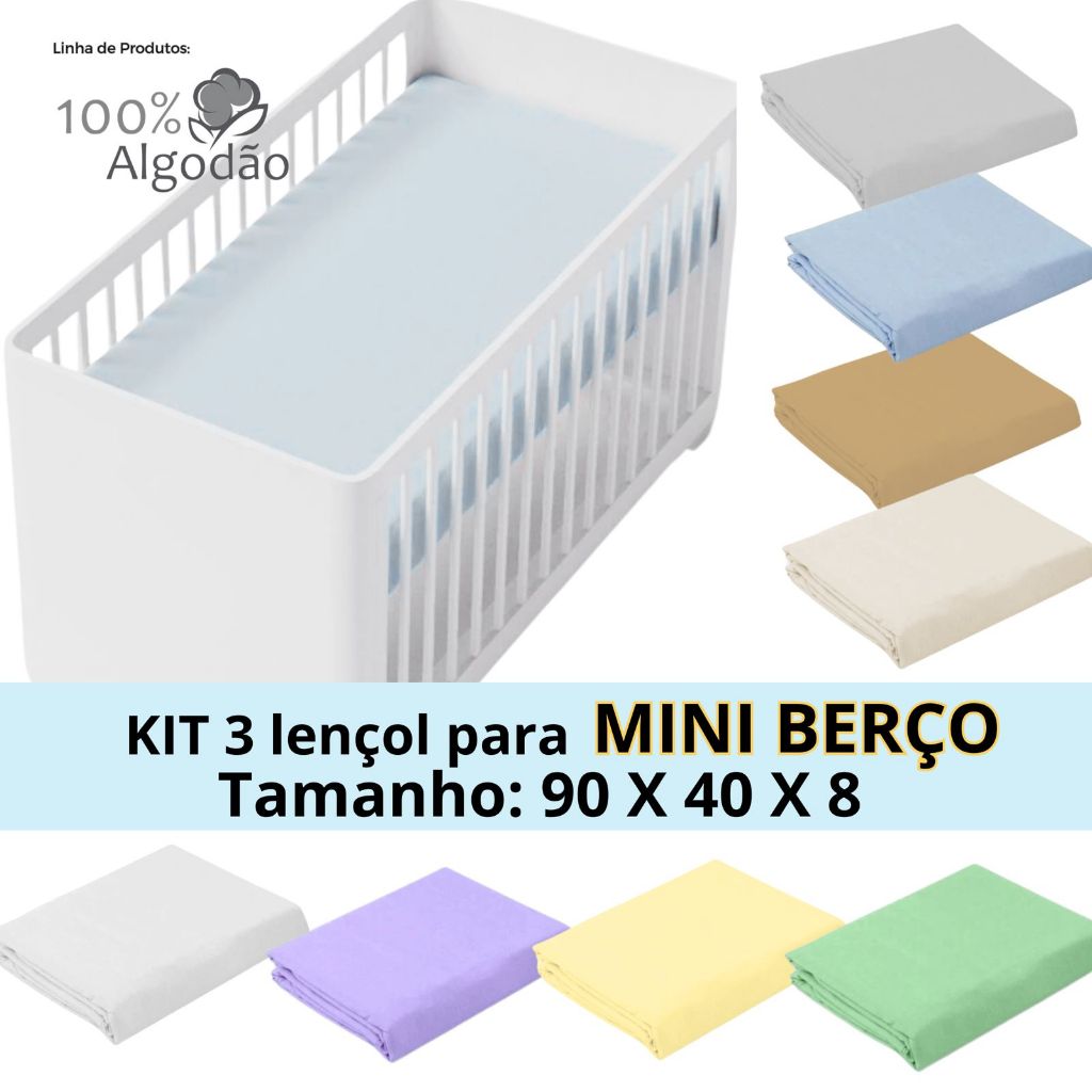 Comprar na ShopeeKit com 3 lençol para mini berço com elástico percal 180 fios