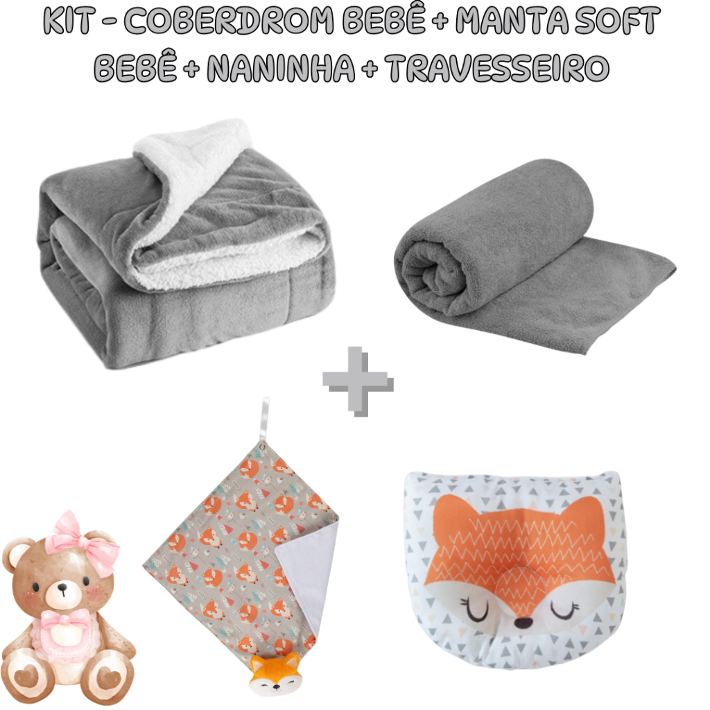 Comprar na ShopeeKit 4 itens bebê - Manta Sherpa + Manta soft + Naninha + Travesseiro Anatômico