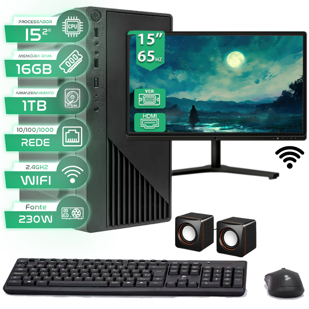 Comprar na ShopeeComputador Intel I5 16gb Hd 1tb Monitor 15'' - Completo