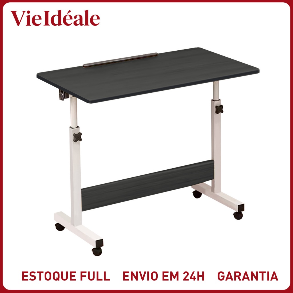 Comprar na ShopeeMesa Giratória 180° Multiuso c/ Rodinhas Altura Ajustável - Notebook Cama Sofá Prática Preto