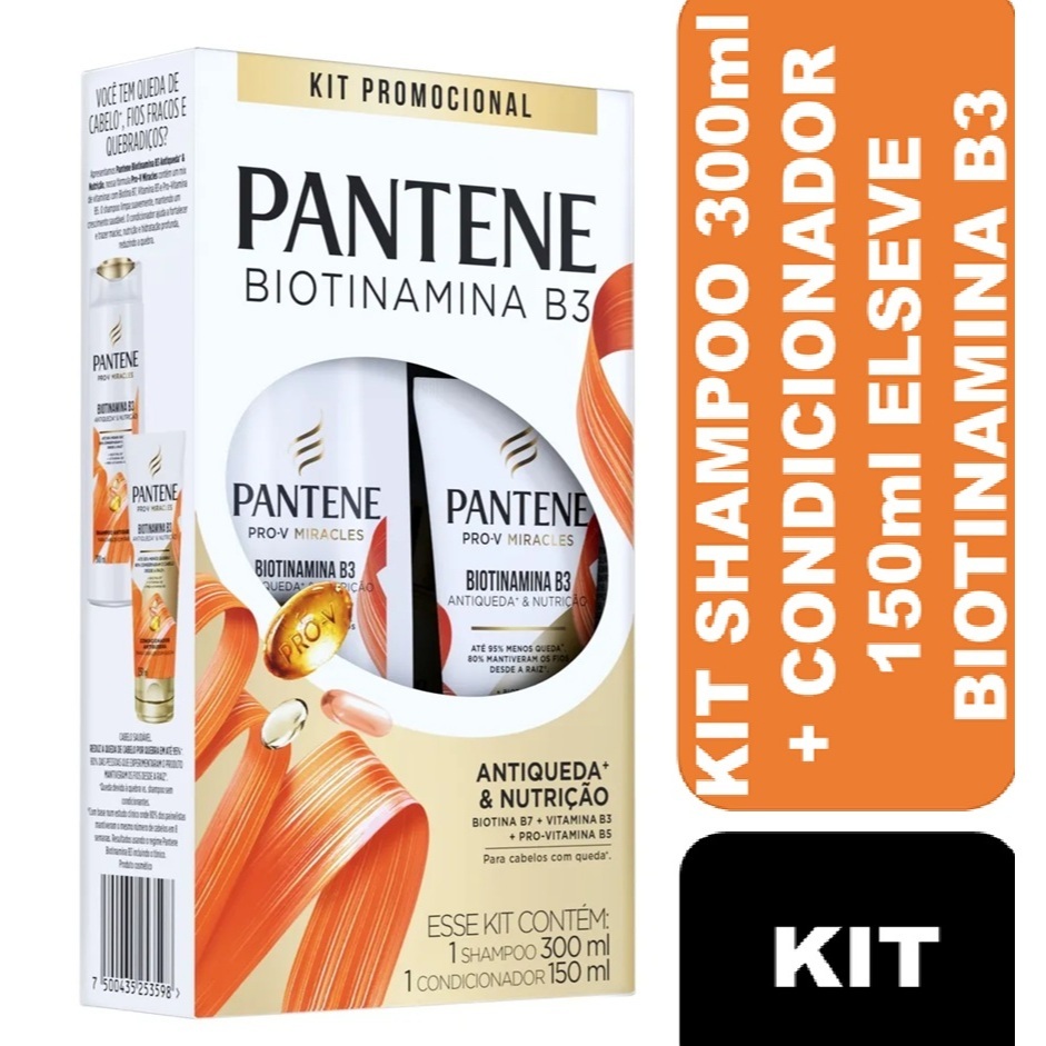 Kit Pantene Biotinamina B3 Shampoo 300ml + Condicionador 150ml Antiqueda e Nutrição