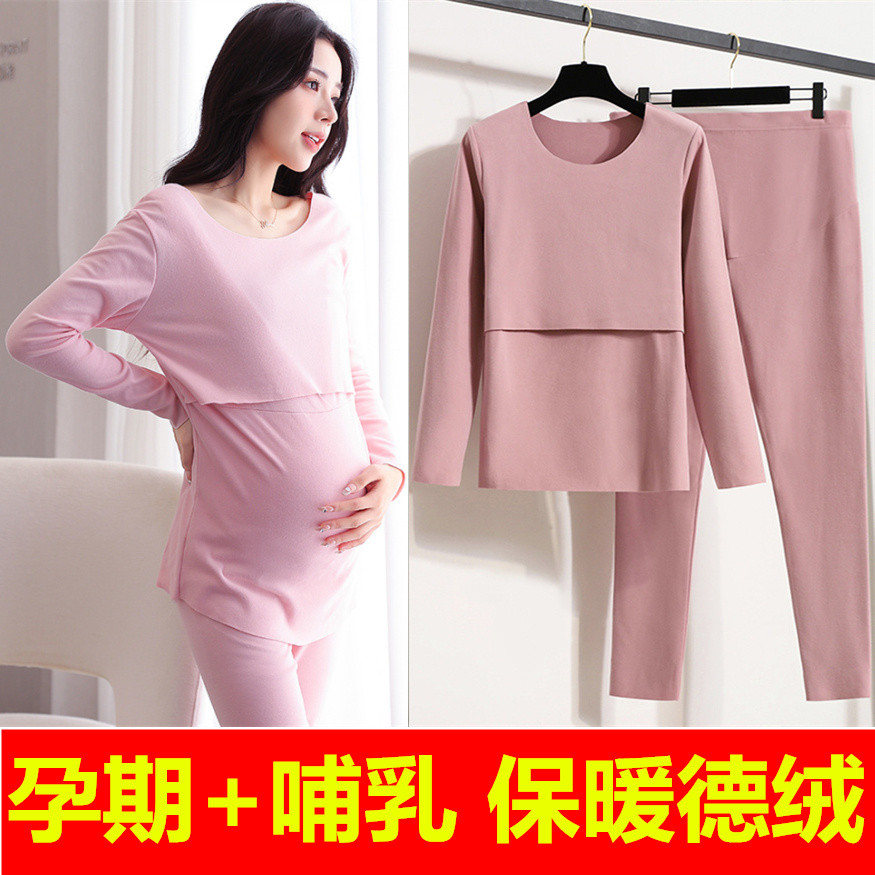 Maternidade roupas de outono calças compridas terno pijamas primavera outono inverno amamentação forro de lã grosso roup